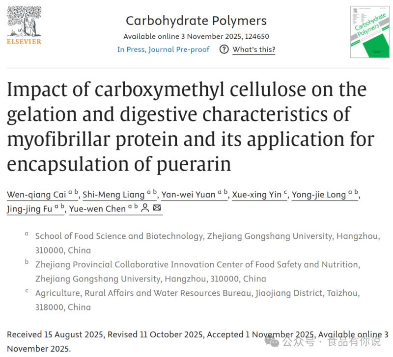近日,浙江工商大学朱扬联合新加坡食品与生物技术创新研究所的 Jianshe Chen 及中国计量大学的 Kun Yang,在《Food Hydrocolloids》期刊(一区,IF:12.4)上发表了题为《Controlled oral destabilization of food emulsions for sequential aroma release and profiled flavour perception》的研究性论文。该研究聚焦食品乳液的口腔可控失稳机制,旨在解决传统乳液风味释放单一的...