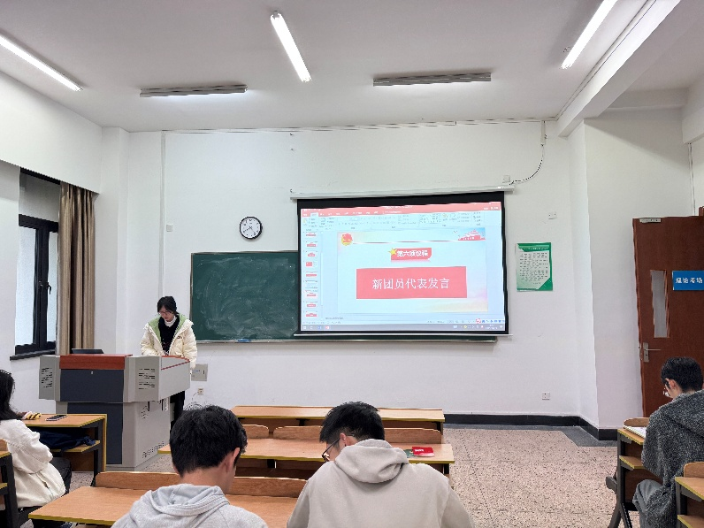 王璐宣读《团章》中有关团员的义务和权利的条款,让新团员对未来如何成为一名优秀的共青团员有更清晰的认识。紧接着,新团员代表徐鸿真和老团员代表杨佳璇相继发言,标志着使命的传承与责任的启航,激励新团员以榜样为标杆,在未来的团组织活动和社会实践中发挥先锋作用,同时也将分散的个体心声汇聚成统一的集体意志。