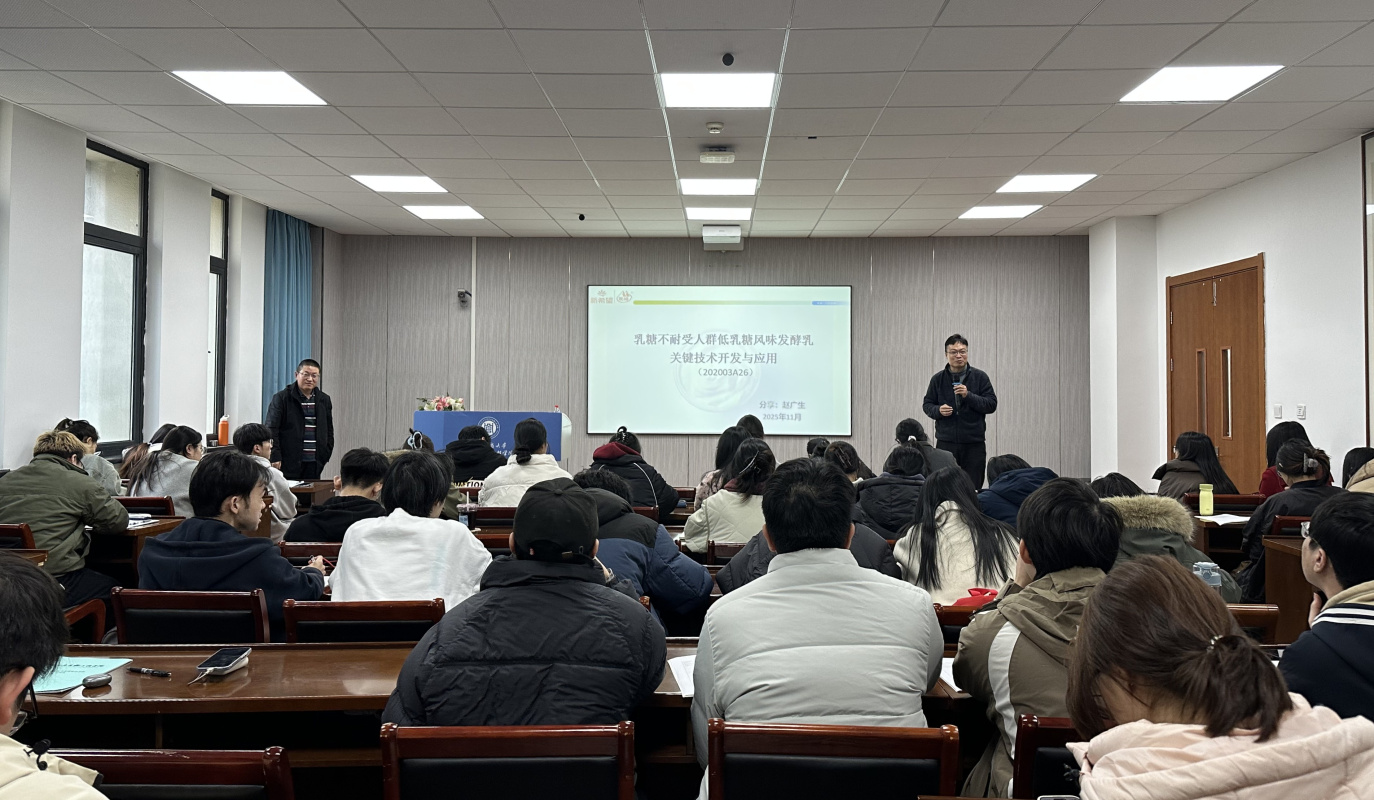 11月28日,一场关于如何让乳糖不耐受人群也能安心享用乳制品的深度讲座,在浙江工商大学食品与生物工程学院“食品创新技术发展前沿”系列讲座上开讲。本次讲座特邀正高级工程师、杭州新希望双峰乳业有限公司总工程师赵广生教授,为师生带来精彩报告。讲座现场气氛热烈,座无虚席,吸引了众多师生参与。讲座由学院副院长田师一教授主持。