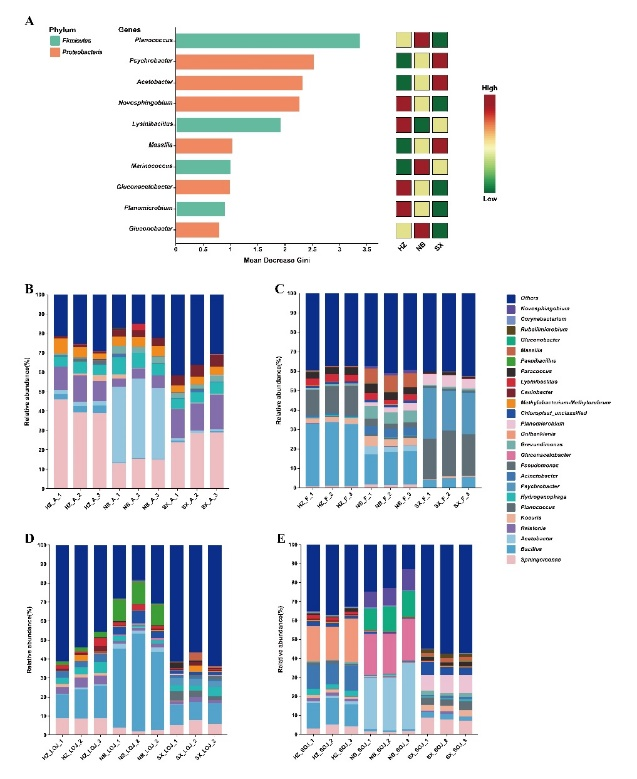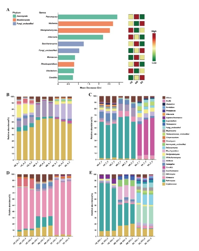 图1. 玫瑰醋酿造车间环境细菌群落和真菌群落的比较