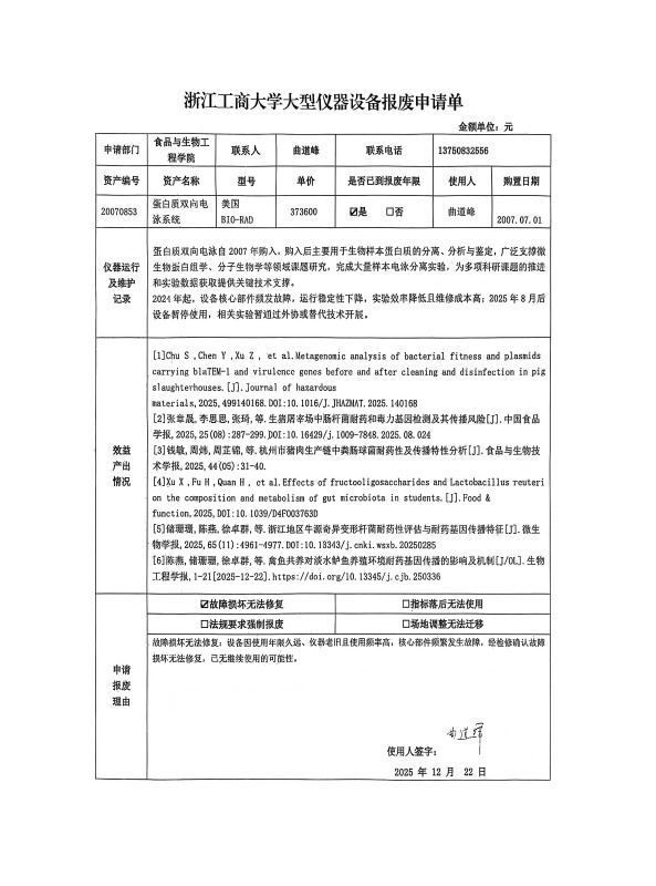 关于蛋白质双向电泳系统的报废公示